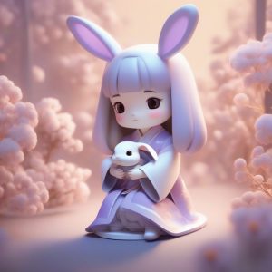 AI绘画提示词中文 – 梦幻童话:C4D光影下的Q版汉服兔子伙伴手办