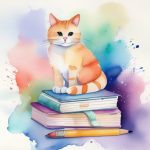 AI art prompt English:A whimsical rainbow watercolor doodle of a unicorn, elements of dreamy clouds and stars scattered across a vibrant scrapbook journal page, childlike hand-drawn style, lively and colorful, soft blending, playful atmosphere