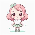 Moe Minimalist Style Green-themed chibi girl Expressive Full Body