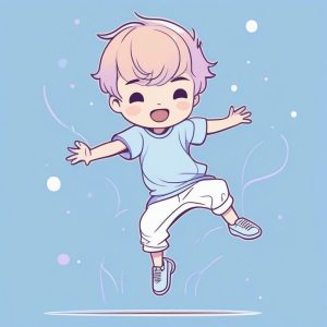 AI绘画提示词中文 – 萌系Q版男孩与小猫:粉蓝治愈系手绘风插画