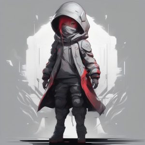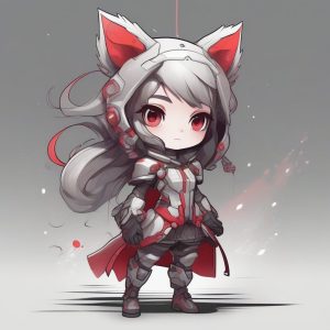 A cute chibi boy, full body, standing. Surreal, intense portraits. Elegant inking and fine expressive lines are key stylistic elements. Algeapunk aesthetics with organic marine textures and futuristic elements. Light gray and light crimson color scheme. Mist envelops the figure. Subtle glitchy and datamosh effects. Furry art aesthetics providing detail. Dreamlike atmosphere. Solid color background.