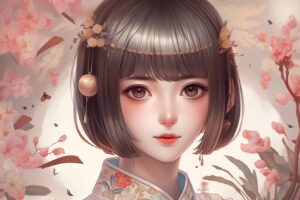 Classical Chinese beauty: delicate facial features porcelain skin elegant hair adorned with silk flowers adorned with traditional dress and jewelry. Focused blurred background portrait. Lighting: Candle Light. Style: Classical –v 5 –ar 3:2 –s 1000 –q 5 –v 5