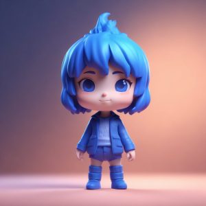 A chibi cyberpunk floating market vendor, full body, standing, with a big head and small body. This is a cute blind box figurine, utilizing clay material in soft pastel colors. High detail 8K 3D render, completed by the Octane engine, where ray tracing emphasizes the appealing sheen of the food. Soft studio lighting. The background is a clean solid light green color, completely empty of patterns. No textures.