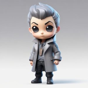 一个Q版赛博朋克浮空市场摊贩,全身站立,大头小身。这是一个可爱的盲盒手办,采用黏土材质,使用柔和的粉彩色调。高细节8K 3D渲染,通过Octane引擎完成,光线追踪强调美食的诱人光泽。柔和的工作室照明。背景是干净的纯浅绿色,完全空白,没有图案。