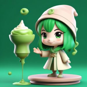 AI art prompt English – Matcha Latte Chibi Girl C4D High Gloss Full Body Render