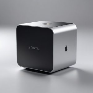 生成一套模块化桌面电脑系统的高清AI渲染图。强调拉丝铝合金的质感和精密工程的细节,展现极致的苹果风格设计。