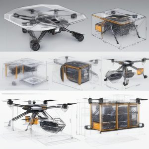 AI art prompt English – Modular Drone System Orthographic Projection Technical Sketch
