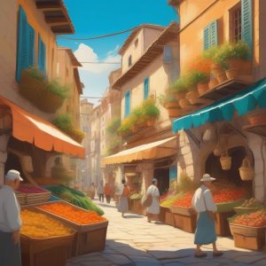 AI art prompt English – Vibrant Coastal Village: Mediterranean Impressionist Oil Painting Prompt