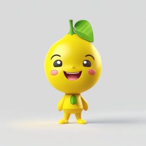 AI绘画提示词中文 – 柠檬切片小仙子:高细节Q版3D渲染,俏皮表情与亮黄色极简背景