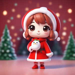 全身站立的3D渲染照片, 捕捉了一个可爱的Q版极简动漫人物, 她打扮成女巫药剂师, 抱着一个药水罐, 做出一个偷笑搅拌的动态姿势, 脸上是略带诡计的丰富可爱表情。画面采用Pop Mart风格的粘土材质和盲盒美学。利用C4D和Octane渲染, 达到高细节8K。背景是干净、简单的纯墨绿色, 柔和的摄影棚灯光配合光线追踪, 营造出神秘的色彩。