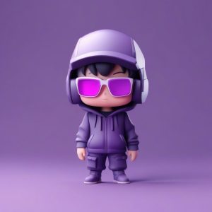使用AI生成Octane渲染的Q版小魔女盲盒手办3D模型,强调光泽质感、全身漂浮姿态和梦幻的紫色纯色背景,适用于收藏品展示。