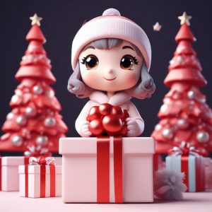 AI art prompt(English) – Pastel Christmas Gift Chibi Girl C4D Prompt