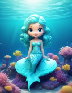 AI绘画提示词中文 – 泡泡玛特风:Q版美人鱼公主,海洋梦幻PVC光泽