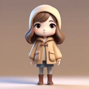 一个田园风Q版女孩的全身站立3D渲染图。她穿着花卉连衣裙和草帽,手中拿着一篮子野花。该角色具有圆润可爱的黏土材质,完美再现了盲盒手办的美学。使用C4D和Octane render进行高保真渲染,光线追踪营造出柔和的工作室照明。配色以大地柔和色系(苔藓绿、薰衣草色)为主。8K高细节。背景:纯色,干净简单的柔和绿色,完全空白,没有图案。