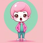 Kawaii Chibi Boy with Animal Hat, Minimalist Style
