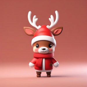 AI绘画提示词中文 – Q版圣诞老人:欢乐招手姿势,柔和布光全身站立照AI提示词