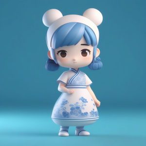🌸 抓住夏天的尾巴!Q版旗袍少女手持一把精致的小折扇,动态十足,表情灵动。强调盲盒纹理和Octane render的高光细节。用最简单的纯色背景(薄荷绿)衬托主体,让图片干净又高级。