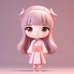 AI绘画提示词(中文) – 旗袍少女Q版盲盒手办:C4D高精度3D渲染全身站立AI绘画提示词