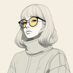 AI绘画提示词(中文) – 💫 气质女神:超酷黑色高领毛衣日系少女,极简线稿全身壁纸。