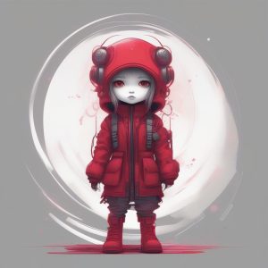 极具动态感的构图,全身肖像,一个穿着不对称前卫时装的潮流Q版女孩。极简线条艺术与大胆的黑墨水轮廓相结合。爆炸性的鲜艳彩虹水彩戏剧性地从服装边缘滴落。强烈强调抽象几何形状,营造出动态感。极简线条艺术,纯白色背景。