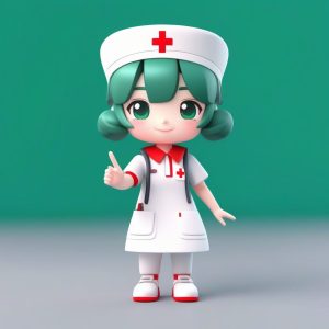 AI绘画提示词中文 – 俏皮Q版护士:比心手势与俏皮眨眼,C4D高精细渲染