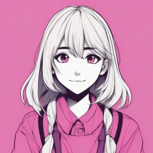 Minimalist anime girl portrait, cute winking expression, highly stylized cel-shading, flat vector illustration look, muted color scheme, soft shadows. Focus on the playful wide-eyed expression. Solid pink background, no texture, extremely simple and clean. (Anime Minimalist Style, key visual, Simple Rendering)