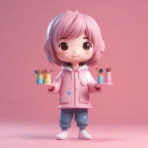 AI绘画提示词中文 – 俏皮眨眼:高风格化二次元极简人像,纯色粉红背景