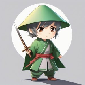 AI art prompt English – Chibi Young Swordsman in Pastel Green, Full Body Heroic Stance Prompt