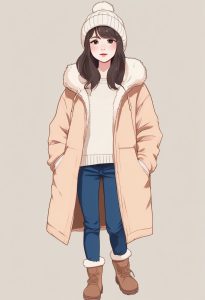 AI绘画提示词(中文) – 🧊清透系!冰蓝色马卡龙极简线稿插画,韩系少女冬日穿搭全身壁纸