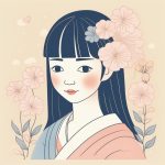 A minimalist line art `illustration` of a Japanese girl wearing a pink and blue denim jacket. This is a `Hand drawn` piece, utilizing `colored pencil` and `crayon style` strokes to emphasize the `textured paper` and `warm colors`. The edges are finished with `soft edges`, creating a `whimsical` and inviting `storybook style` aesthetic. Solid clean white background.