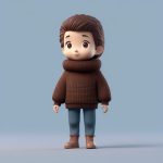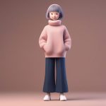 AI绘画提示词(中文) – 秋日氛围感:穿着高领毛衣的极简二次元少女头像与暖色纯色背景