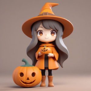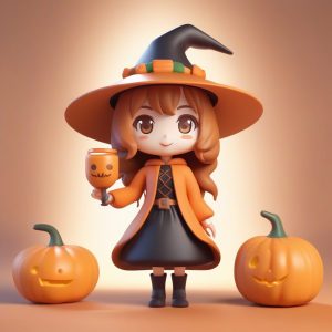 Autumn Chibi Witch | Pop Mart Clay Texture Halloween Prompt – AI art prompt(English) :