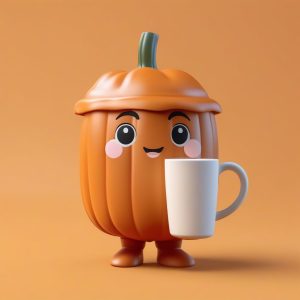 一个极简动漫角色,全身站立照,描绘一个可爱的卡哇伊Q版小女巫,穿着南瓜主题的秋季服饰。完全符合Pop Mart盲盒手办美学,采用迷人的粘土质感。这是一个高细节的3D渲染,由C4D和Octane渲染器完成。她处于一个抱着大南瓜的动态姿势,表情鬼马且丰富。通过光线追踪和柔和的工作室照明,展现温暖的秋日柔和色彩。8K高细节渲染。背景是纯焦糖色,干净简单,完全空白。