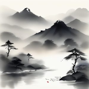 一个静谧的日式和风茶室,配有榻榻米地板、推拉和纸门、简约木质家具,色调柔和且自然。透过敞开的门,可以看到安静的枯山水庭院,院中岩石与白色碎石被精心布置和耙制。空间洋溢着和谐、平静和传统禅意美学的魅力。
