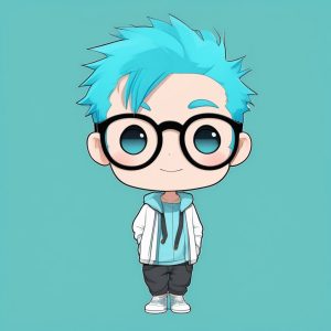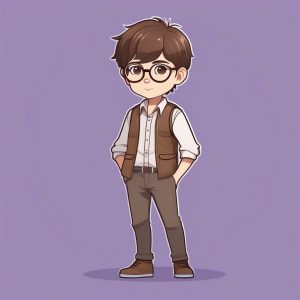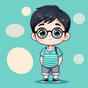 Japanese Minimalist Kawaii Chibi Boy with Glasses