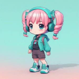 AI art prompt(English) – Kawaii Chibi Magical Girl Prompt: Full Body Dynamic Pose on Solid Background