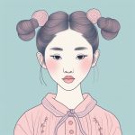 AI art prompt(English) – Japanese Vlog Cover Essential: Pink-Blue Minimalist Line Art Girl Sitting by the Window