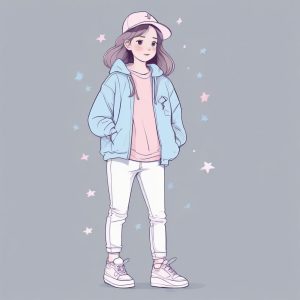 AI绘画提示词中文 – 柔和粉彩配色:极简Q版女孩,偷偷摸摸的圆润治愈系插画