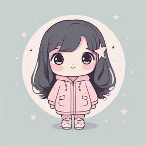 AI art prompt English – Soft Rounded Lines Chibi: Exaggerated Twirl Pose Minimalist Doodle
