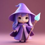AI绘画提示词中文:软萌极简Q版紫发厨师少女粘土公仔