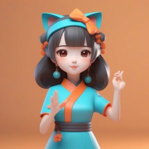 AI绘画提示词中文 – 软萌睡衣风:慵懒猫耳娘Q版盲盒3D模型渲染提示词