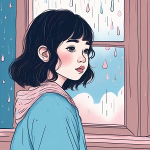 AI art prompt(English) – Soft Moe Healing: Japanese Girl and Snowflakes, Pink Blue Winter Theme AI Art