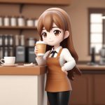 一个可爱的q版动漫人物,全身站立(以抱膝姿势),穿着温暖的可可棕色冬装。她抱着膝盖,表情平静且治愈,细节丰富。采用盲盒手办美学风格,强调迷人的粘土质感和完美圆润的特征。这是通过C4D和Octane渲染引擎实现的高细节3D渲染。场景利用光线追踪和柔和工作室照明,展示柔和的粉彩色调。背景是纯净的浅棕色,8K高分辨率。