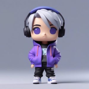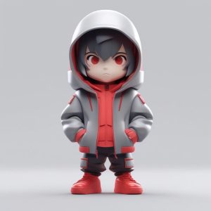 AI art prompt English – Cyberpunk Neon Chibi Boy: Oversized Hoodie 3D Blind Box Model