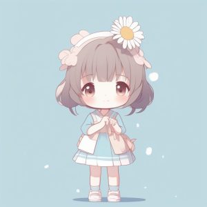 AI art prompt English – Cel-Shading Sweetness: Smiling Girl Holding a Daisy