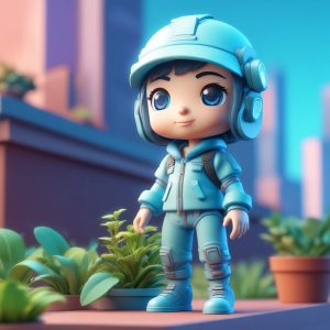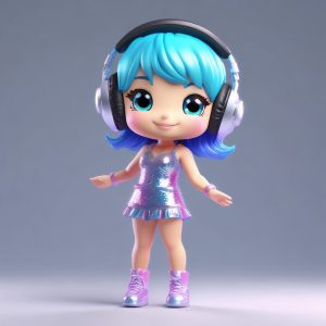 未来世界的虚拟偶像来了!🌟Q版赛博朋克AI Idol,全身站立,大头小身。使用C4D 3D render,将黏土材质和偶像服装的科幻元素完美融合,柔和的工作室照明营造舞台感!