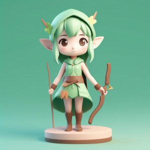 🍃Bamboo Green Chibi Doll Clay Figure Prompt – AI art prompt(English) :