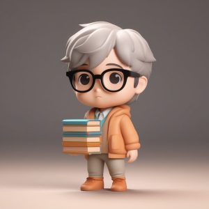 AI art prompt English – Chibi Librarian Boy 3D Blind Box Prompt: Glasses and Brown Sweater