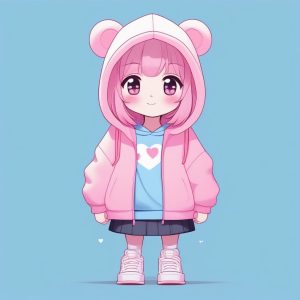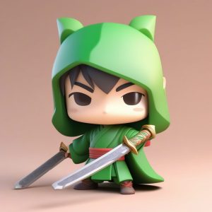 AI art prompt English – Minimalist Chibi Female Wuxia Rogue with Fan, Stealthy Stance