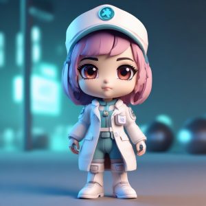 一个Q版全息狐妖,全身站立,大头小身,拥有发光的半透明全息狐狸尾巴。这是一个迷人的盲盒手办,采用光滑的黏土材质和柔和的粉彩色调。高细节8K 3D渲染,通过Octane引擎完成,光线追踪效果突出全息光芒。柔和的工作室照明。背景是干净的纯紫红色,完全空白,没有纹理。